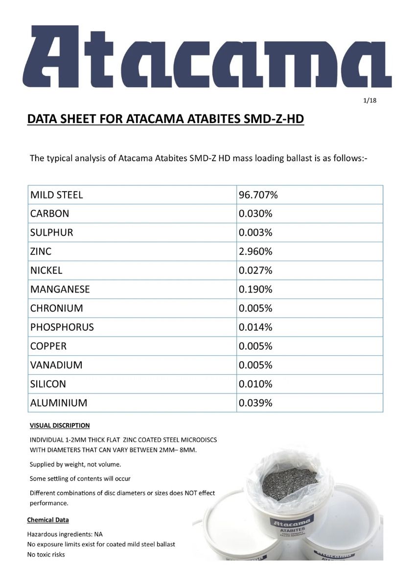 Featuring new zinc coated micro-discs, the Atabite SMD-Z 7HD inert filler has a uniformed particulate size giving consistent sonic performance. The Zinc coating adds mass, protects the filler from both oxidisation and degradation while enhancing the visual aesthetics.