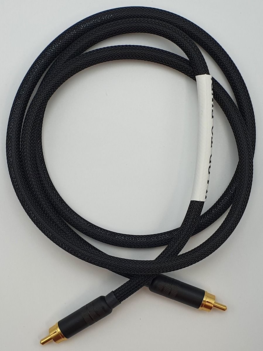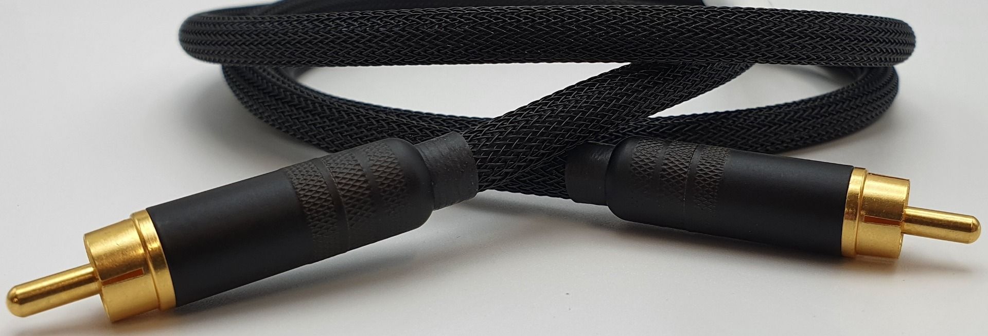 Magnetically sheilded Braided oxygen free cable Gold plated RCA connectors Manufactured using 4% silver solder