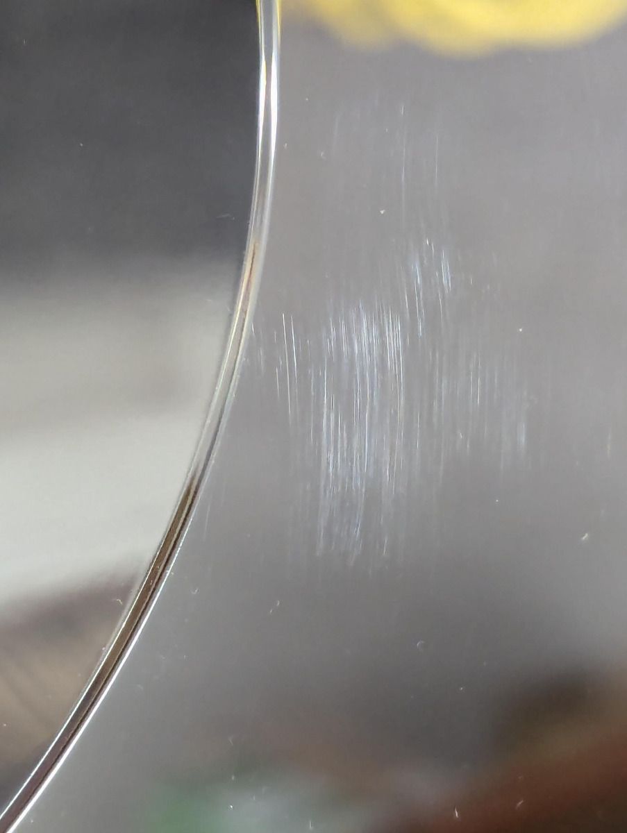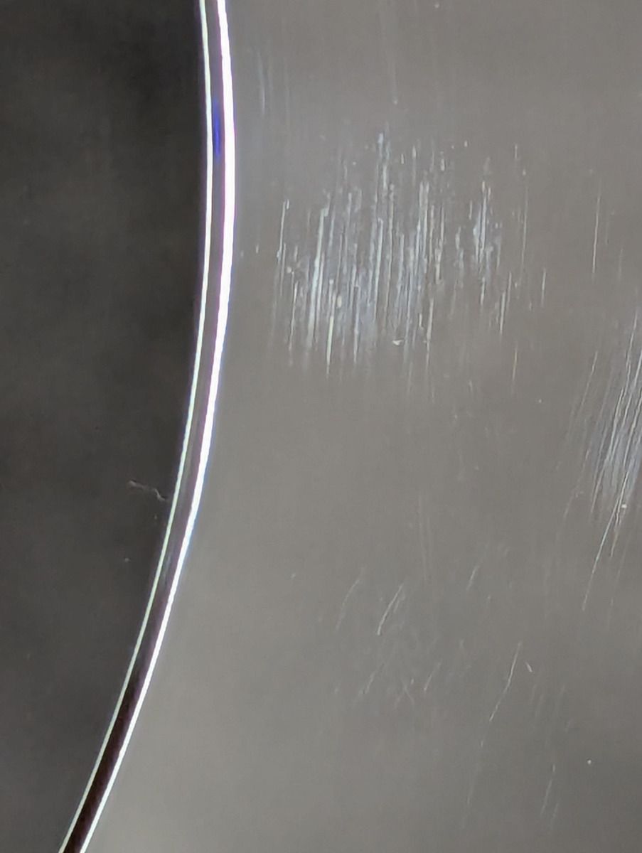 Some light scuffing around the dome in the centre top of the lid. This is only visible at the right angle.